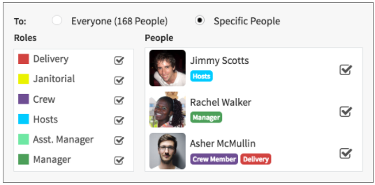 Instantly communicate with your entire team, or just specific roles, with the click of a button.